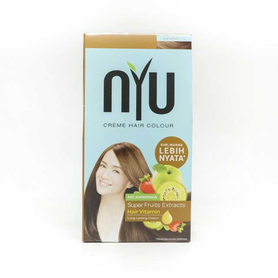 Merupakan pewarna rambut tanpa ammonia pertama dalam kemasan sachet yang sempurna menutup uban, tanpa rasa takut akan kerusakan pada rambut ini Diperkaya dengan Super fruit extract yang melindungi rambut pada saat pewarnaan agar rambut terhindar dari kerusakan dan tetap sehat. Dilengkapi dengan 1 sachet Vitamin rambut yang dapat menutrisi rambut dan membuat rambut lembut dan cantik berkilau. Rasakan pewarnaan rambut yang lebih nyaman dengan aroma buah dari NYU.