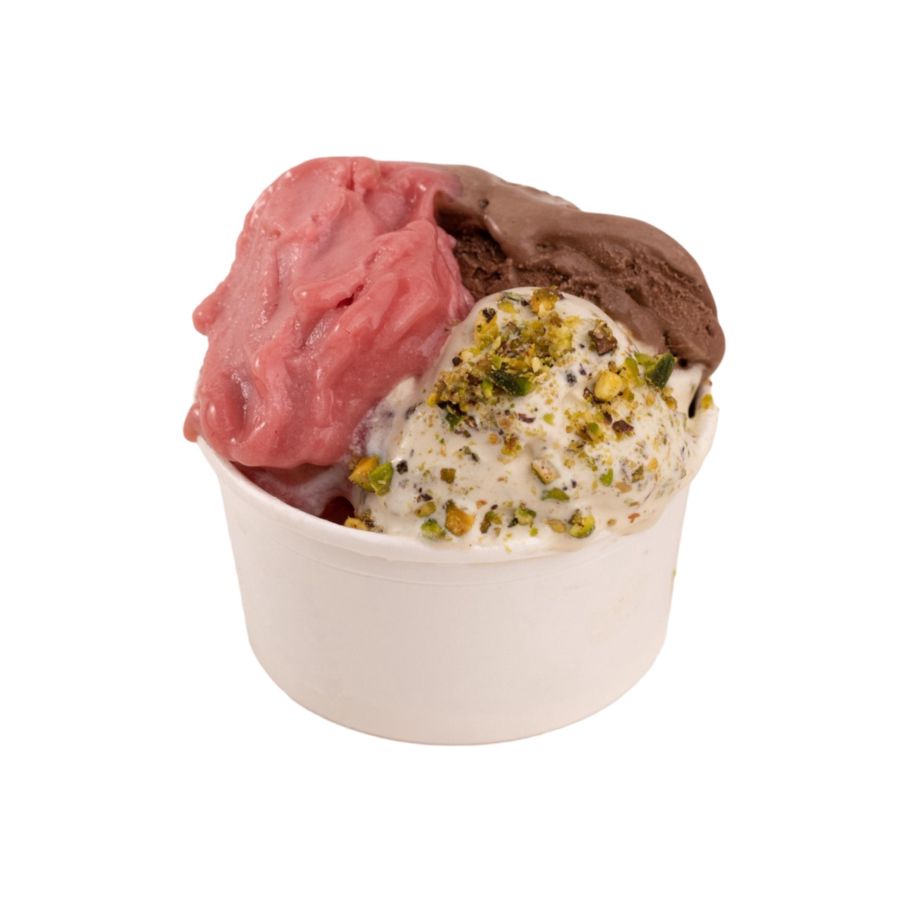 Oma Elly Gelato 3 Flavors adalah 3 scoup bebas pilih varian rasa ; Gelato Straciatella , Gelato Hazelnut, Gelato Pistachio, Gelato Bacio, Gelato Burn Cheese Cake.