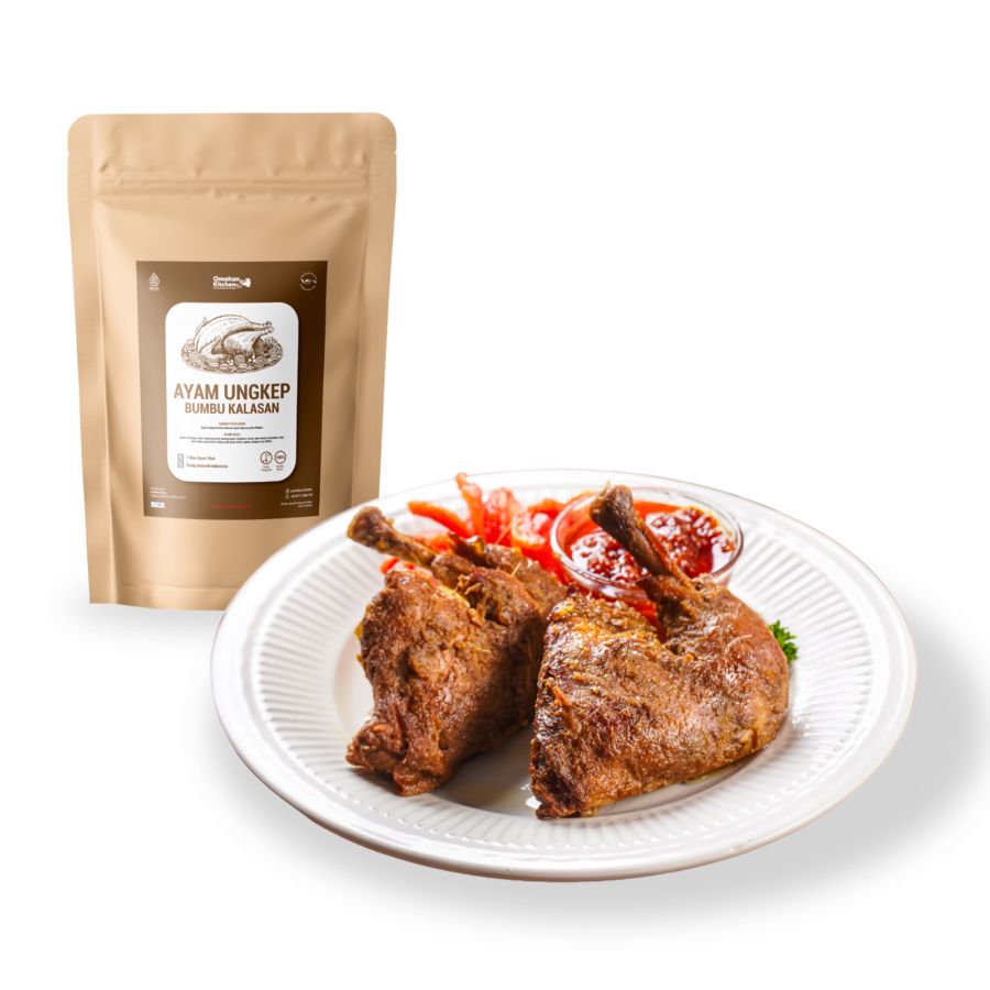 Omahan Kitchen menghadirkan untuk anda Ayam Kalasan (Ungkepan). Dimasak dengan bumbu-bumbu istimewa sehingga menghasilkan cita rasa ayam kalasam seperti masakan rumahan. Cocok dijadikan ayam bakar juga. Sudah dilengkapi dengan sambal yang menambah cita rasa. Praktis dan yang pasti enak.