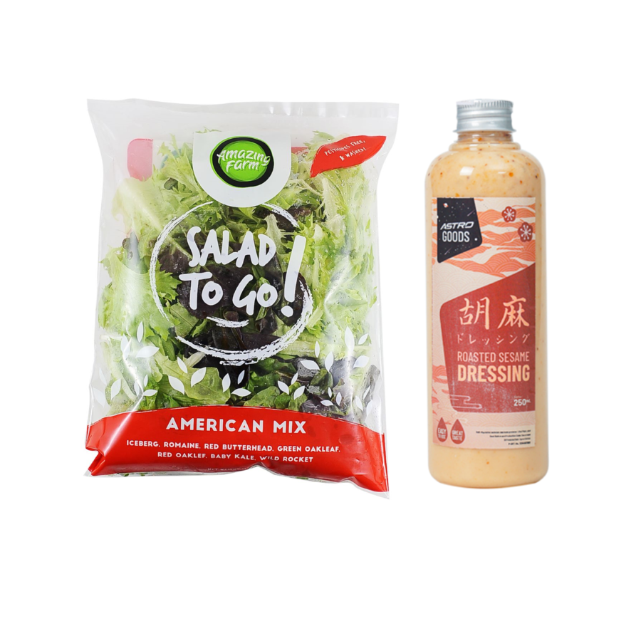 1. Campurkan ±5 sendok makan Astro Goods Roasted Sesame Dressing 250ml dengan Salad to go.