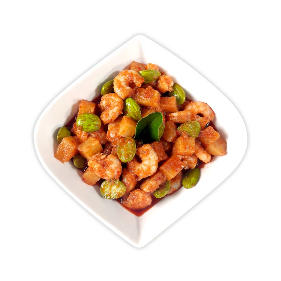 3. Masukan udang, aduk hingga berubah warna. Tambahkan kentang goreng, tambahkan sedikit air.