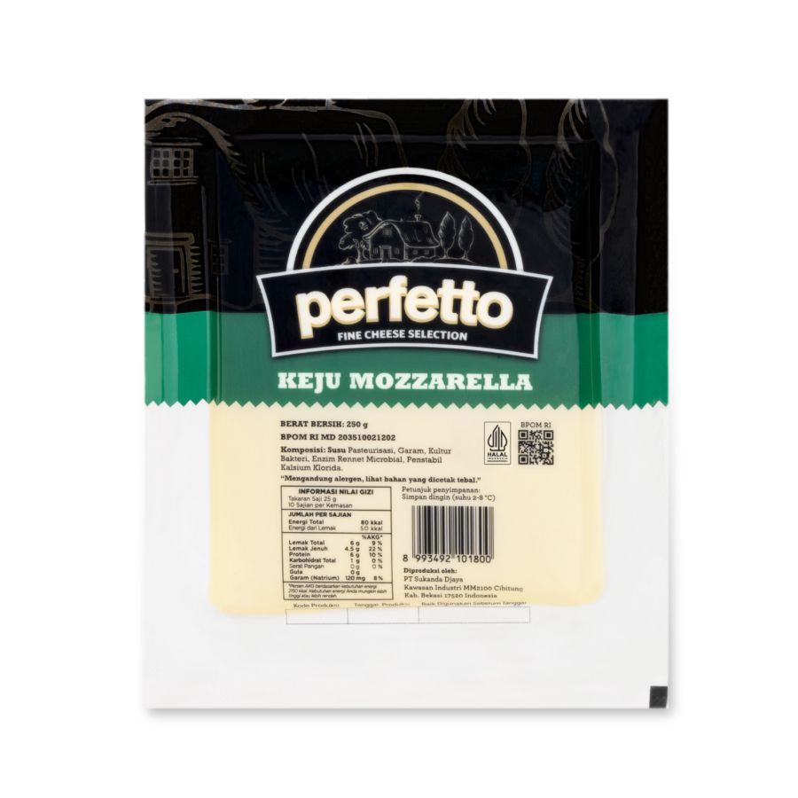 Lelehan lembut dengan sensasi stretchy khas mozzarella menjadikan Perfetto Mozzarella Cheese 250 gram pilihan tepat untuk bikin pizza, pasta panggang, hingga camilan sederhana terasa lebih creamy dan menggugah selera.