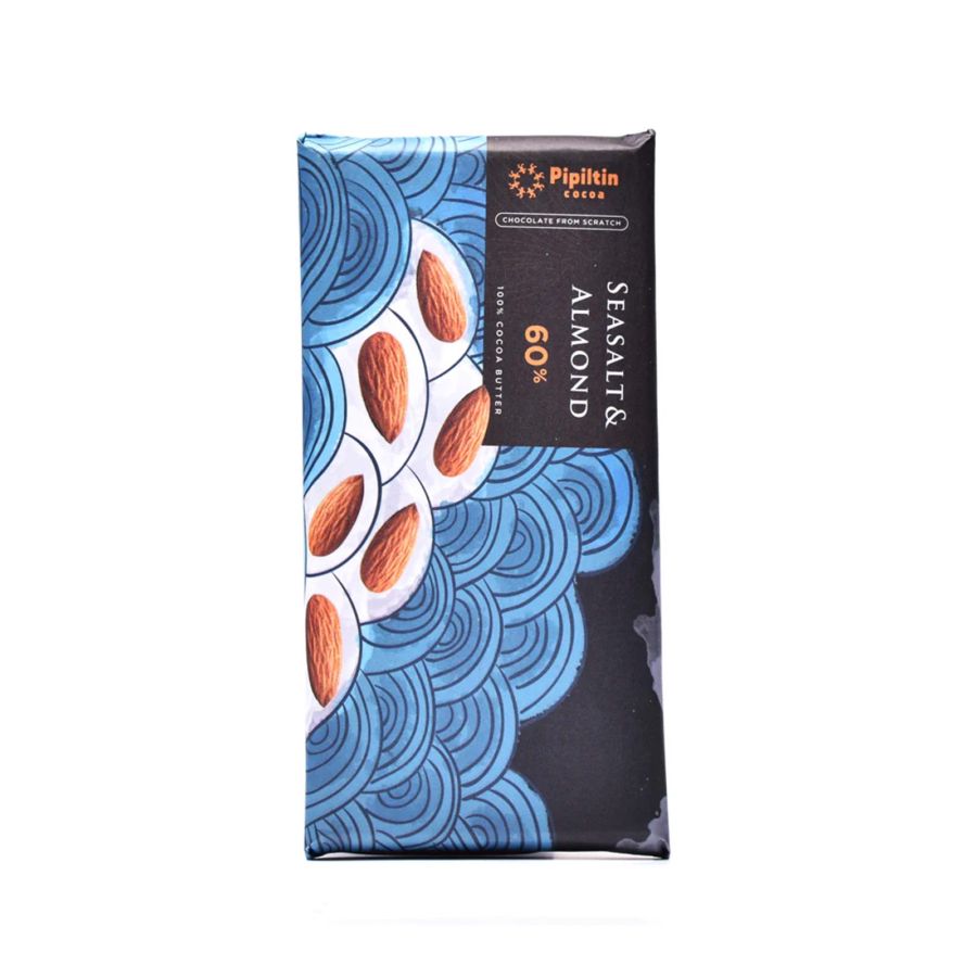 Pipiltin Chocolate Bar Seasalt & Almond 80gr adalah pilihan sempurna untuk menikmati cokelat premium dengan rasa gurih dan manis yang sempurna. Dibuat dengan biji kakao pilihan dan campuran garam laut serta almond yang kaya akan nutrisi.