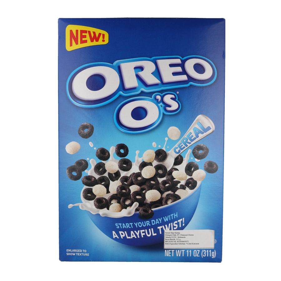 Sereal oreo rasa cokelat yang dipadukan dengan marshmallow. Cocok disajikan dengan susu untuk sarapan.