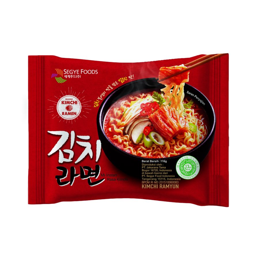 Segye Food Kimchi Ramyun Mie Instan 116 gram pas buat kamu yang suka ramen kuah pedas segar ala Korea dengan aroma kimchi yang khas, mi-nya tebal dan kenyal dengan kuah merah gurih sedikit asam yang bikin nagih, enak banget disantap hangat saat hujan, nonton drama, atau kapan saja lagi pengen mie kuah ala restoran Korea tapi tetap praktis dimasak di rumah.