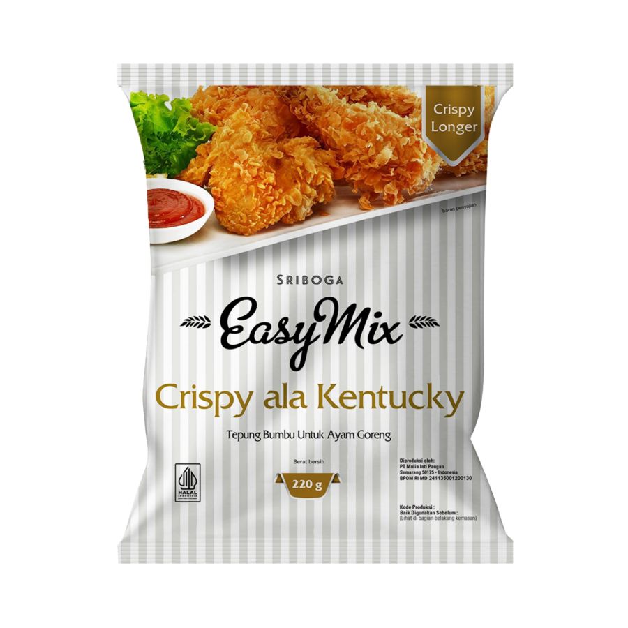 Tepung bumbu crispy ala Kentucky yang diracik untuk menghasilkan lapisan gorengan renyah dengan rasa gurih yang meresap. Perpaduan tepung dan rempah pilihan membantu menciptakan tekstur crispy di luar serta tetap lembut di dalam.