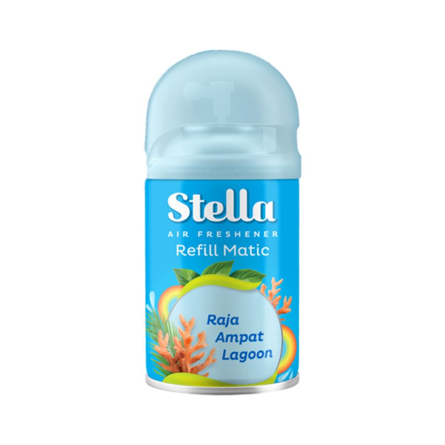 Stella Refill Matic Raja Ampat adalah pengharum ruangan semprot dengan wangian terbaru dari Stella Air Freshener. Pasang kaleng refill ke dalam alat pengharum ruangan matic Stella, atur durasi semprot. Jangan lupa ganti isi ulang tiap 30 hari.