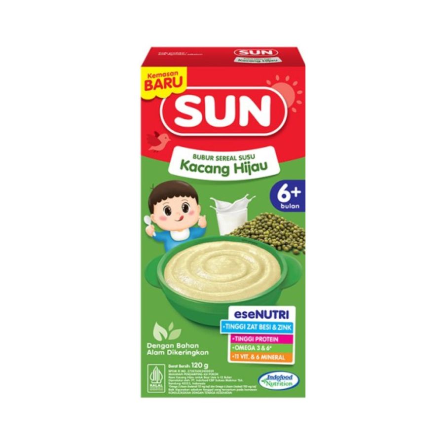 Nikmati kelezatan Sun Bubur Sereal Susu Kacang Hijau Box 120gr yang siap memanjakan lidah si kecil. Dibuat dengan bahan-bahan berkualitas, bubur sereal ini menghadirkan rasa yang lezat dan bergizi. Kandungan susu dan kacang hijau dalam setiap suapan memberikan nutrisi yang dibutuhkan tubuh si kecil. Dengan kemasan praktis, Sun Bubur Sereal Susu Kacang Hijau Box 120gr cocok untuk dinikmati di mana saja dan kapan saja. Dapatkan kebaikan dan kenikmatan dalam setiap gigitan dengan Sun Bubur Sereal Susu Kacang Hijau Box 120gr.