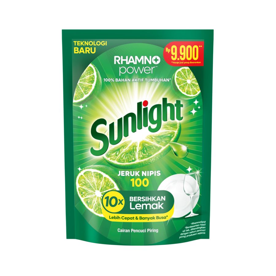 Dibekali dengan formula terbaru yang mengandung teknologi revolusioner Rhamno Power, Sunlight Lime memberikan kekuatan maksimal untuk membersihkan peralatan makan dan masak. Teknologi ini membantu mengangkat lemak membandel 10x lebih cepat, menghasilkan cucian yang bersih kesat dan bebas dari bau tidak sedap.