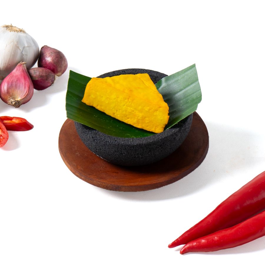 Tahu yang dimasak dengan bumbu kuning hingga meresap, lalu digoreng hingga bagian luar keemasan dengan tekstur lembut di dalam. Memiliki rasa gurih dengan aroma rempah khas yang ringan, cocok sebagai pelengkap nasi.