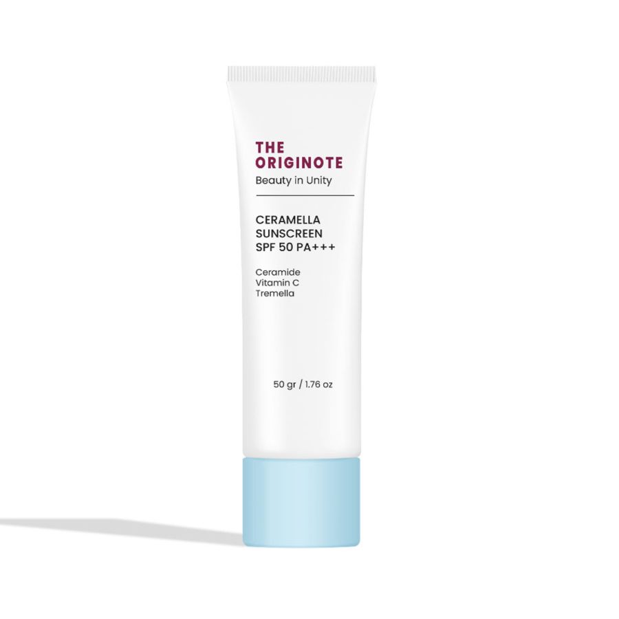 The Originote Ceramella Sunscreen adalah sunscreen hybrid dengan perlindungan SPF 50 PA++++ yang menggabungkan filter chemical dan physical. Diformulasikan dengan 3 jenis Ceramide, Tremella, dan Vitamin C untuk membantu menjaga skin barrier, melembapkan, sekaligus mencerahkan kulit. Teksturnya ringan, mudah meresap, dan tidak meninggalkan white cast, sehingga nyaman digunakan sehari-hari.