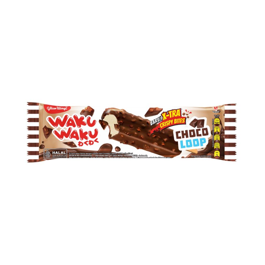 Nikmati sensasi es krim creamy dengan lapisan cokelat yang renyah — Waku Waku Chocoloop 35 ml siap memberikan kesegaran manis di setiap gigitan. Ukurannya praktis, cocok dibawa sebagai camilan ringan kapan saja. Cocok untuk kamu yang suka es krim klasik & simpel, tapi tetap ingin sensasi cokelat creamy yang memuaskan.