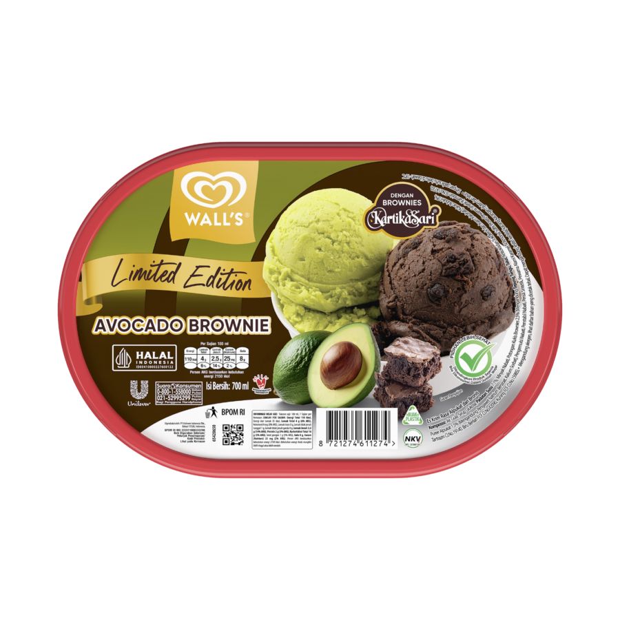 Manjakan diri Anda dengan paduan sempurna dari alpukat dan brownies dengan brownies Kartika Sari dalam satu kemasan es krim legendaris dari Wall’s. Hadir dalam tekstur creamy yang halus dan rasa autentik, menjadi pilihan ideal untuk momen istimewa bersama keluarga maupun sebagai pelengkap hidangan penutup favorit Anda.