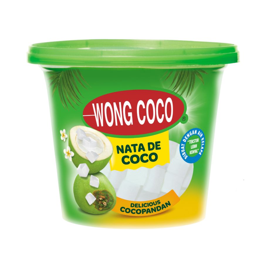 Wong Coco Nata de Coco Cubes dibuat dengan air kelapa yang dibentuk cubes (kotak), gula asli tanpa pemanis buatan.